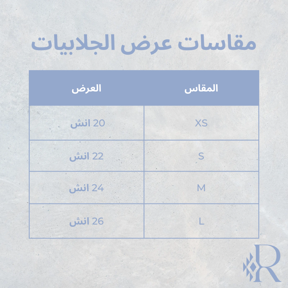 مقاسات الجلابية على المودل: الطول 48 العرض 20 XSانش