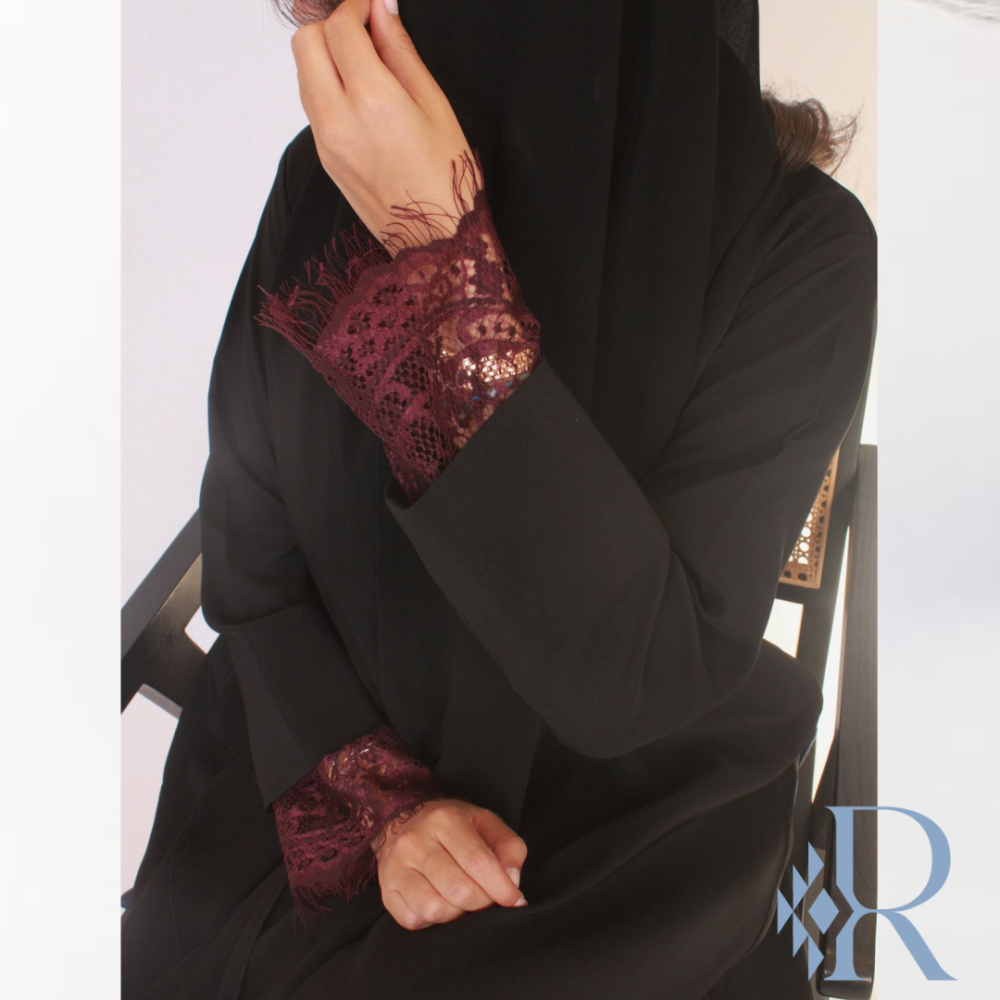 قماش العباية:كريب-دانتيل(يمكن تبطين الاكمام)