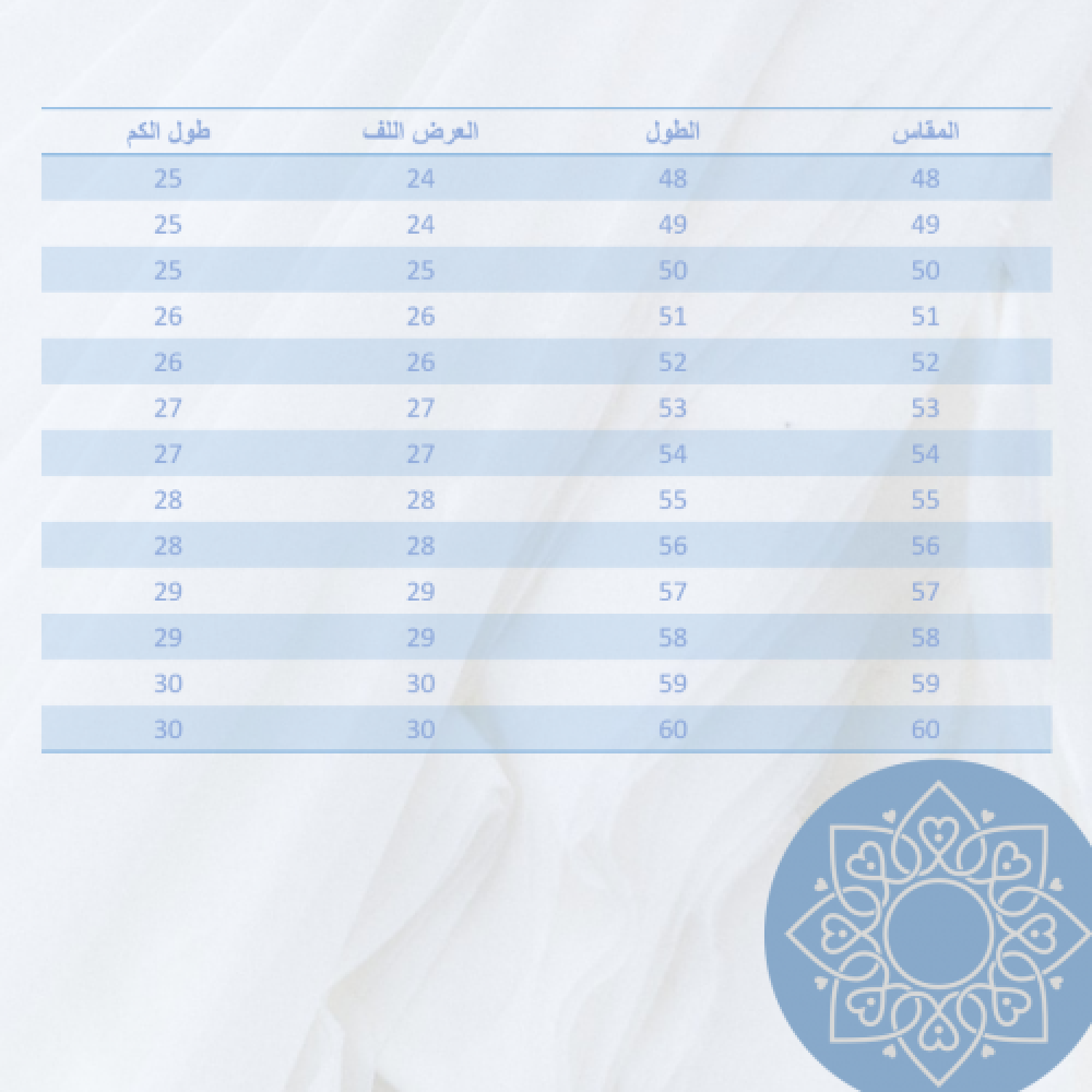 *يرجى الاطلاع على جدول المقاسات بالصور