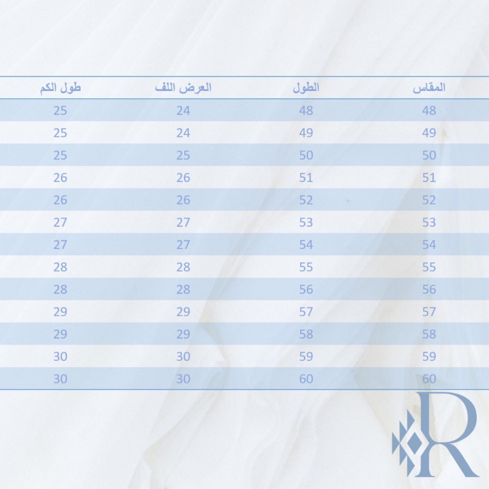 *يرجى الاطلاع على جدول المقاسات بالصور