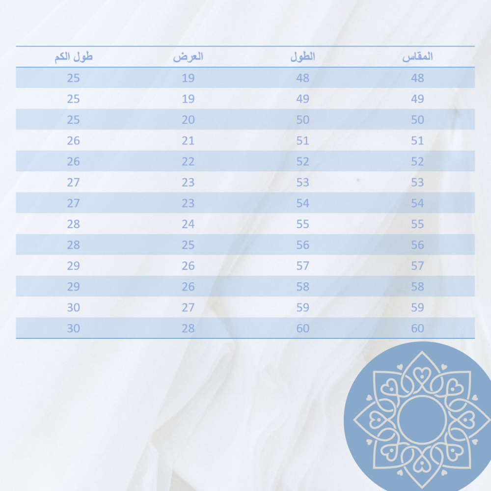*يرجى الاطلاع على جدول المقاسات بالصور