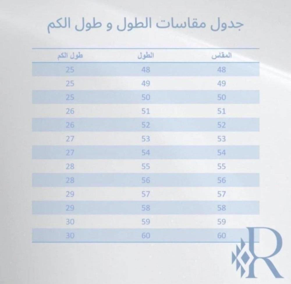 *الرجاء الاطلاع على جدول المقاسات*